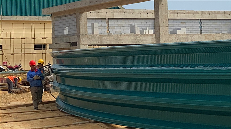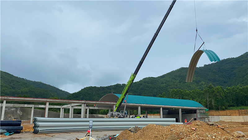 本項目采用跨度19至23米的拱形波紋鋼屋蓋結構體系,使用厚度為1.2mm的高強度彩涂卷材,并通過914-610型設備進行現場壓型及安裝。這種結構具備良好的受力性能和排水能力,適用于大跨度、多單元的車庫建筑場景。