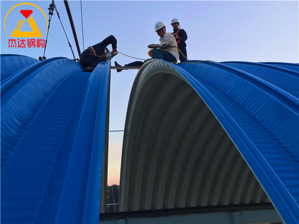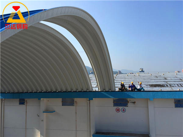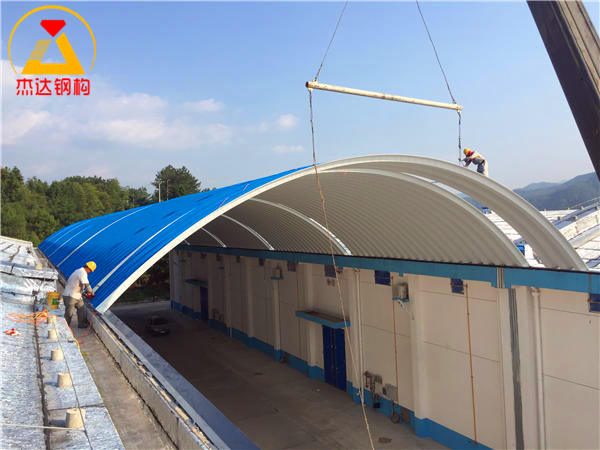 在拱腳和拱形屋頂中央兩側安裝角鋼支撐,保障結構穩(wěn)定。