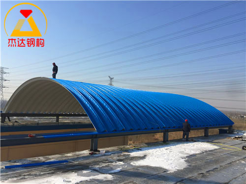 江蘇倉間罩棚通常采用在原糧庫上架設(shè)水泥站柱,再安裝H型鋼梁,最后焊接托板形成拱形屋頂?shù)慕Y(jié)構(gòu)。這種設(shè)計適用于沒有預(yù)埋件的舊糧庫,通過后期加固實現(xiàn)倉間罩棚的功能,確保糧食儲備環(huán)境的改善。