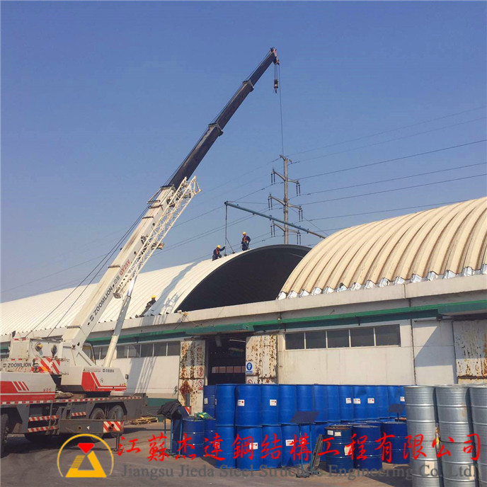 2024年,江蘇杰達鋼結構工程有限公司成功承接并完成青島某化工企業倉庫屋頂的拱形屋蓋更換工程,施工質量與效率獲得業主一致認可。工程名稱:青島紅星化工廠倉庫屋頂更...