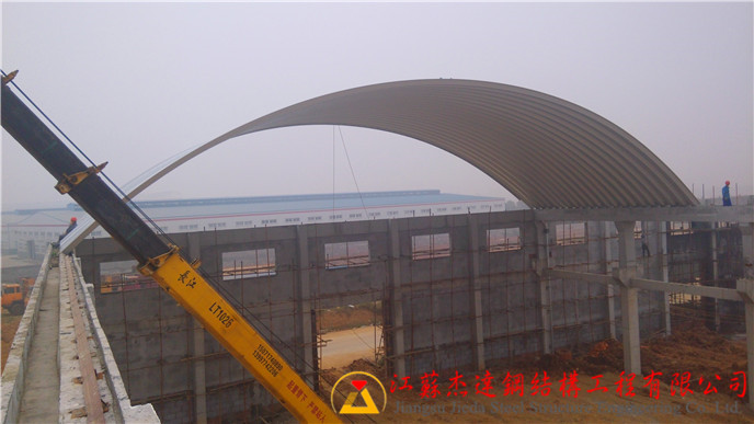 江蘇杰達(dá)鋼結(jié)構(gòu)工程有限公司專注于大跨度拱形屋頂?shù)氖┕ぃ缍确秶?5米至38米之間,致力于打造結(jié)構(gòu)穩(wěn)固、設(shè)計(jì)合理的鋼結(jié)構(gòu)屋頂,滿足不同建筑需求。