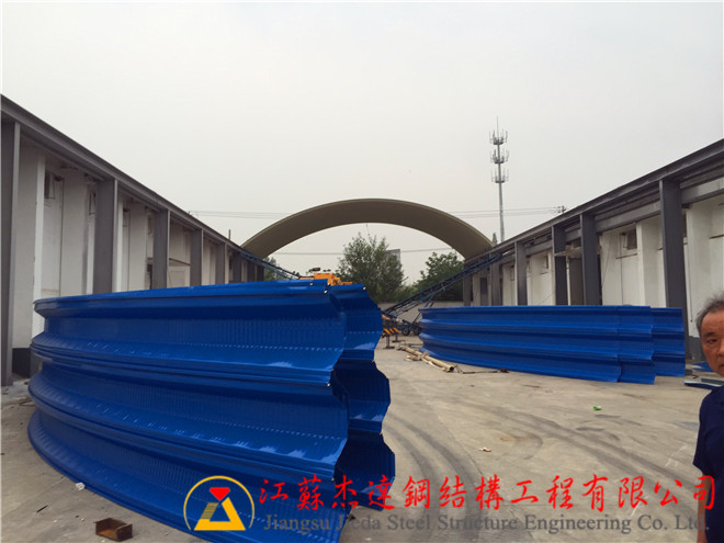 近日,由江蘇杰達鋼結構工程有限公司承建的遼寧省某糧食儲備庫倉間罩棚拱形屋面工程順利完工,具備優良的防風防雨性能,展示了杰達鋼構在糧食倉儲領域的工程實力。工程名稱...