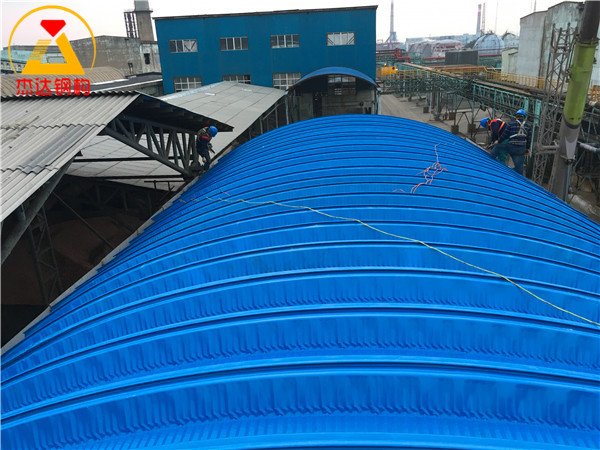 江西鷹潭市貴溪冶煉廠的罩棚工程是一項鋼結(jié)構(gòu)拱形屋頂建設(shè)項目,體現(xiàn)了結(jié)構(gòu)設(shè)計與施工的緊密配合,保障了廠區(qū)的實用功能與安全性。
