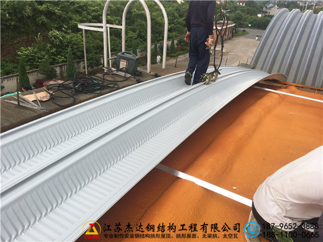 設(shè)備出板環(huán)節(jié)是施工中的重要環(huán)節(jié),所有部件均經(jīng)過嚴(yán)格檢測。組裝過程采用科學(xué)流程,保證瓦片精準(zhǔn)拼接,提升整體結(jié)構(gòu)穩(wěn)定性。無梁拱設(shè)計(jì)提升了屋頂?shù)某兄啬芰Γ覝p輕自重,利于長期使用。