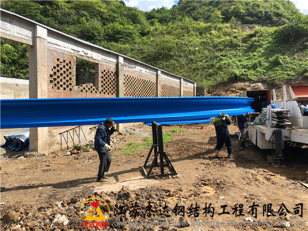 該廠房跨度為18米,長度40米,總面積約720平方米,所使用的托板厚度為5毫米。屋頂設計的矢跨比為1:4,拱高約為4.5米,展現了合理的結構比例和空間利用。