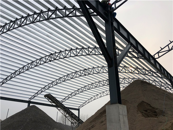 這些堆料車間一般是由于政府下達的混凝土公司需要治理揚塵的明文要求而建設的,所以如何將砂石料封閉起來,不讓它污染外界環境,以及如何降低成本,很少的錢,做很大、很高、很美觀、很具有經濟效益的廠房,尤為重要。