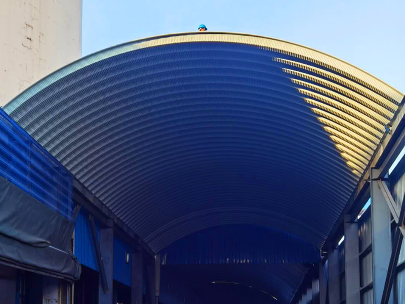金屬拱形屋頂結(jié)構(gòu)安裝完成,等待后續(xù)質(zhì)量驗(yàn)收。