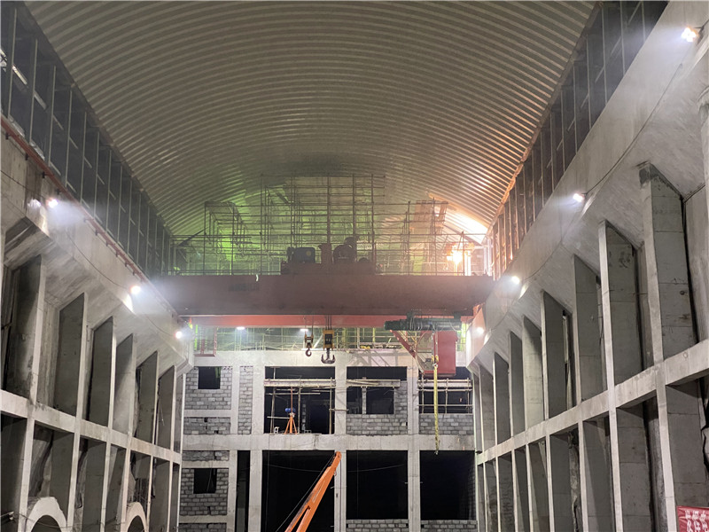 由于廠房內(nèi)拱形屋頂高度遠(yuǎn)超普通結(jié)構(gòu),加之山洞內(nèi)光線昏暗、濕度大,必須加強(qiáng)現(xiàn)場安全管控。每位進(jìn)入洞內(nèi)的施工人員都需佩戴安全帽與安全繩,所有高空作業(yè)點(diǎn)設(shè)有專人監(jiān)督并做好臨邊防護(hù)。