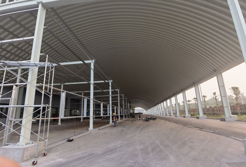 本項(xiàng)目位于重慶市江津區(qū)白沙工業(yè)園,是一項(xiàng)涉及超大跨度彩色金屬拱形屋頂?shù)某隽吓锕こ蹋┕ぶ芷诰o湊,施工管理嚴(yán)格,確保質(zhì)量與進(jìn)度的良好平衡。